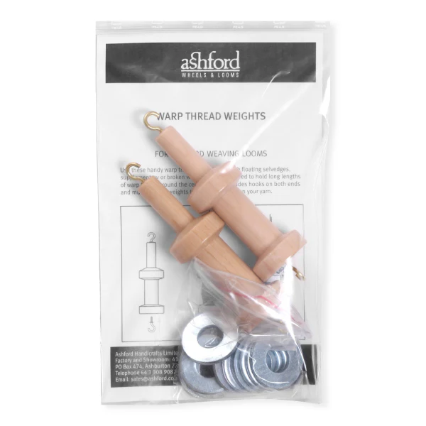 Use these handy warp thread weights to hold floating selvedges, supplementary or broken warp threads under tension while you weave. Designed to hold long lengths of warp thread around the central spool.