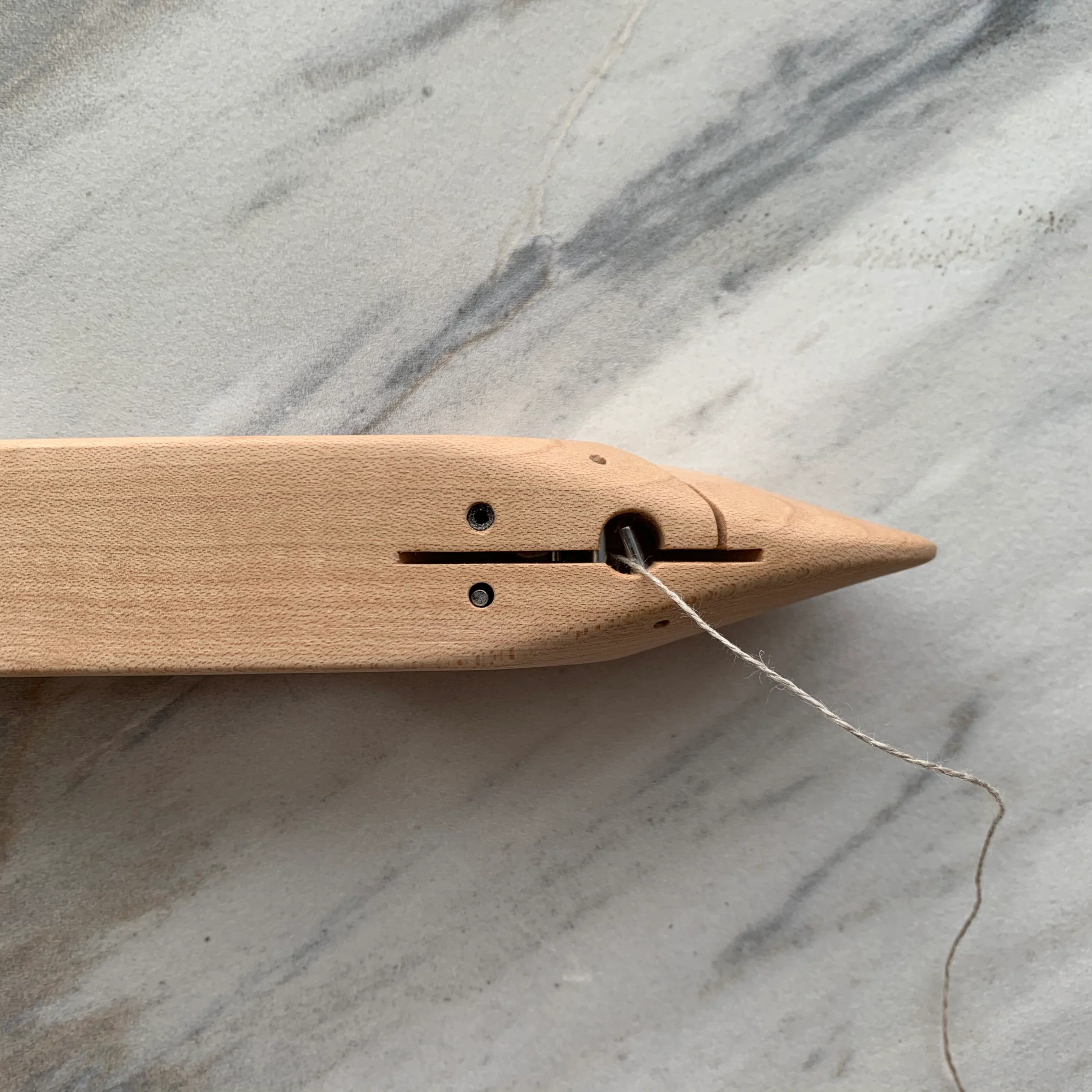Resist the temptation to handle the weft yarn at all. Simply adjust the tension with the enclosed Allen wrench to suit the yarn you are using and allow your shuttle to do the work. You’ll love how you can weave more rapidly than ever.